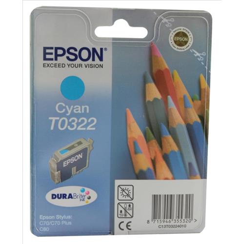 Epson T0322 Cyan DURABrite Inkjet Cartridge (Pencils) Stylus C70/C80 Ref C13T032240